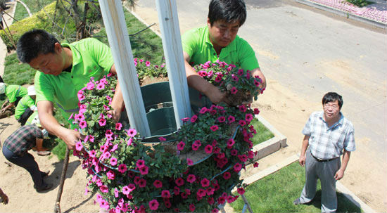 市園林局有關負責人說,“一般都是一些時令鮮花,還可根據不同季節、節假日進行更換。比如牽牛花、一串紅等顏色較為鮮艷的花種。遇到重大節假日,如“五一”、國慶、春節等,只要把原來的花挖出來,再栽植新的時花,“一夜就可以搞定一條街的換植,簡單、方便,并不會影響道路綠化景觀”。
